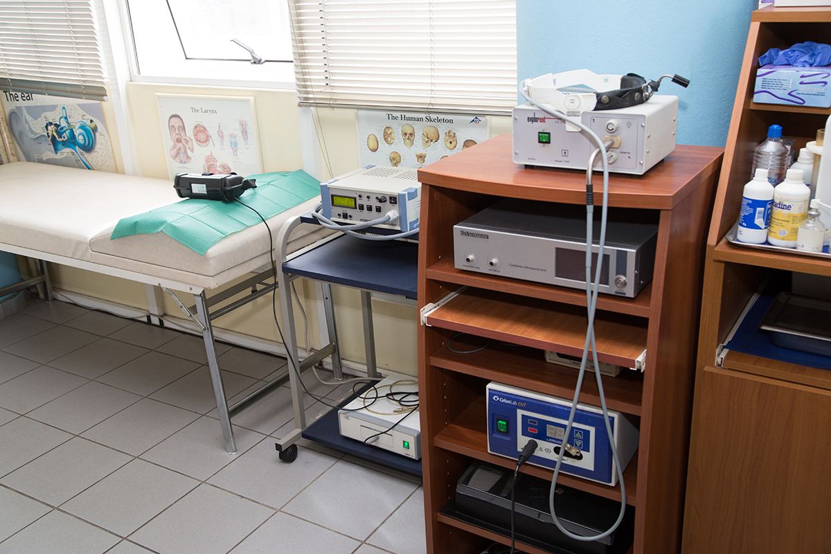 Το ΩΡΛ ιατρείο είναι πλήρως εξοπλισμένο με σύγχρονα διαγνωστικά μηχανήματα, για τον πλήρη έλεγχο παιδιών, ενηλίκων και υπερηλίκων. Αναλυτικότερα, διαθέτει: Ακοογράφο, Τυμπανογράφο, Ηχητικά αντανακλαστικά, Διαγνωστικό υπέρηχο ιγμορείων. Επίσης, Video-ενδοσκοπικά ρινός και φαρυγγο-λάρυγγος, Video-ωτομικροσκόπηση, Ωτοακουστικές εκπομπές (για νήπια & βρέφη), Video-ηλεκτρονυσταγμογράφο με αέρα (όχι νερό), Προκλητά δυναμικά εγκεφαλικού στελέχους. Επιπροσθέτως, ο ΩΡΛ Γρηγόριος Βρύνας αναλαμβάνει χειρουργικές πράξεις, με τοπική αναισθησία, στο χώρο του ιατρείου του. Προς το σκοπό αυτό, διαθέτει σύγχρονα εργαλεία, κλίβανο αποστείρωσης και αξιόπιστα μηχανήματα ραδιοσυχνοτήτων και χειρουργικού υπερήχου. Παράλληλα, ο ιατρός χειρουργεί στην ιδιωτική MEDICLINIC (Δορυλαίου 24, Πλ. Μαβίλη, Αθήνα), της οποίας διατελεί εξωτερικός συνεργάτης.